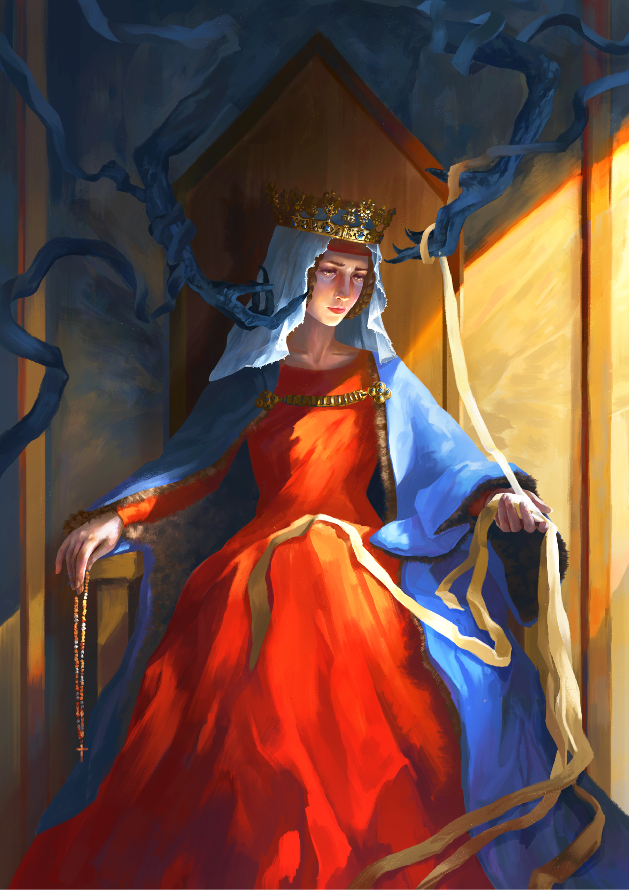 Luxusní tisk ilustrace české královny Elišky Rejčky na vysokogramážním papíře s barevnou stálostí 100 let, vhodné pro rámování. K dostání ve třech velikostech - A3, A4 a A5